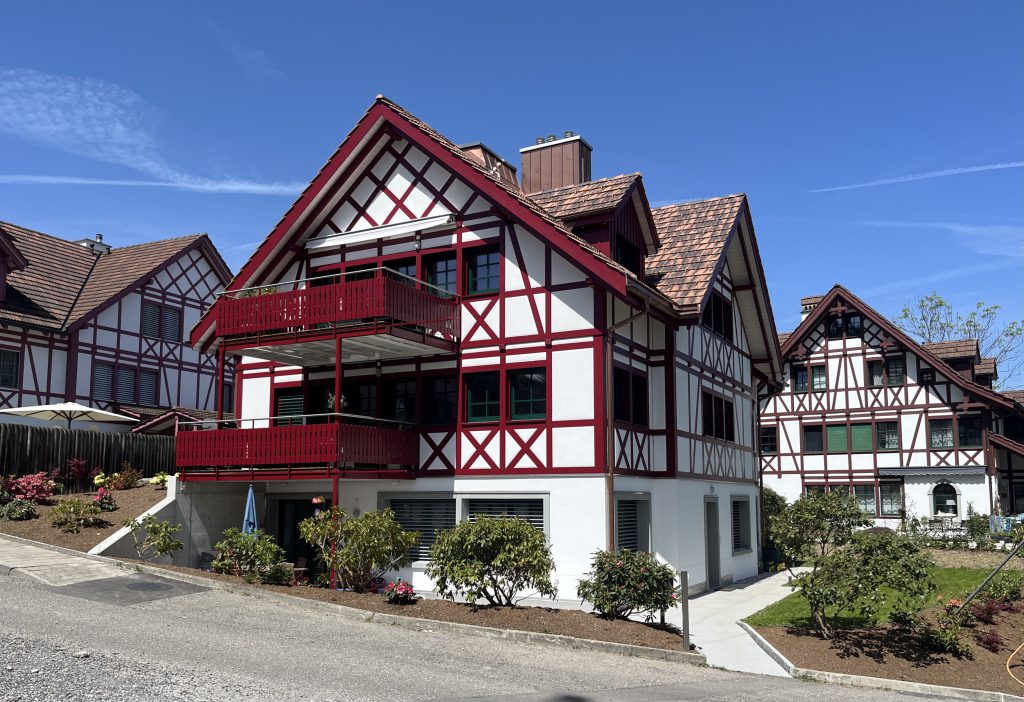 3-Familienhaus in Riegelbauweise mit Erkerturm an der Rütistrasse 8, 8a, 8b in CH-9325 Roggwil TG